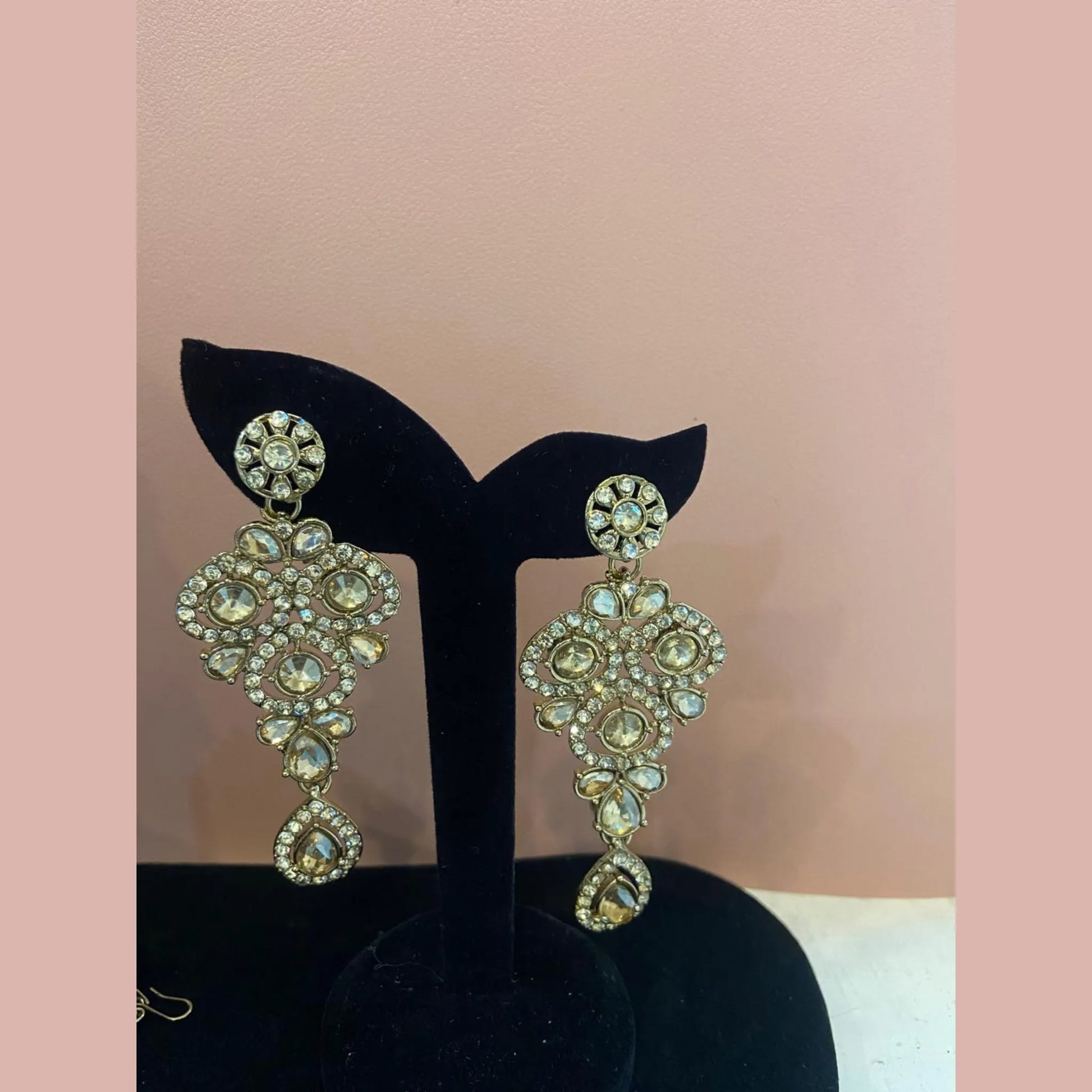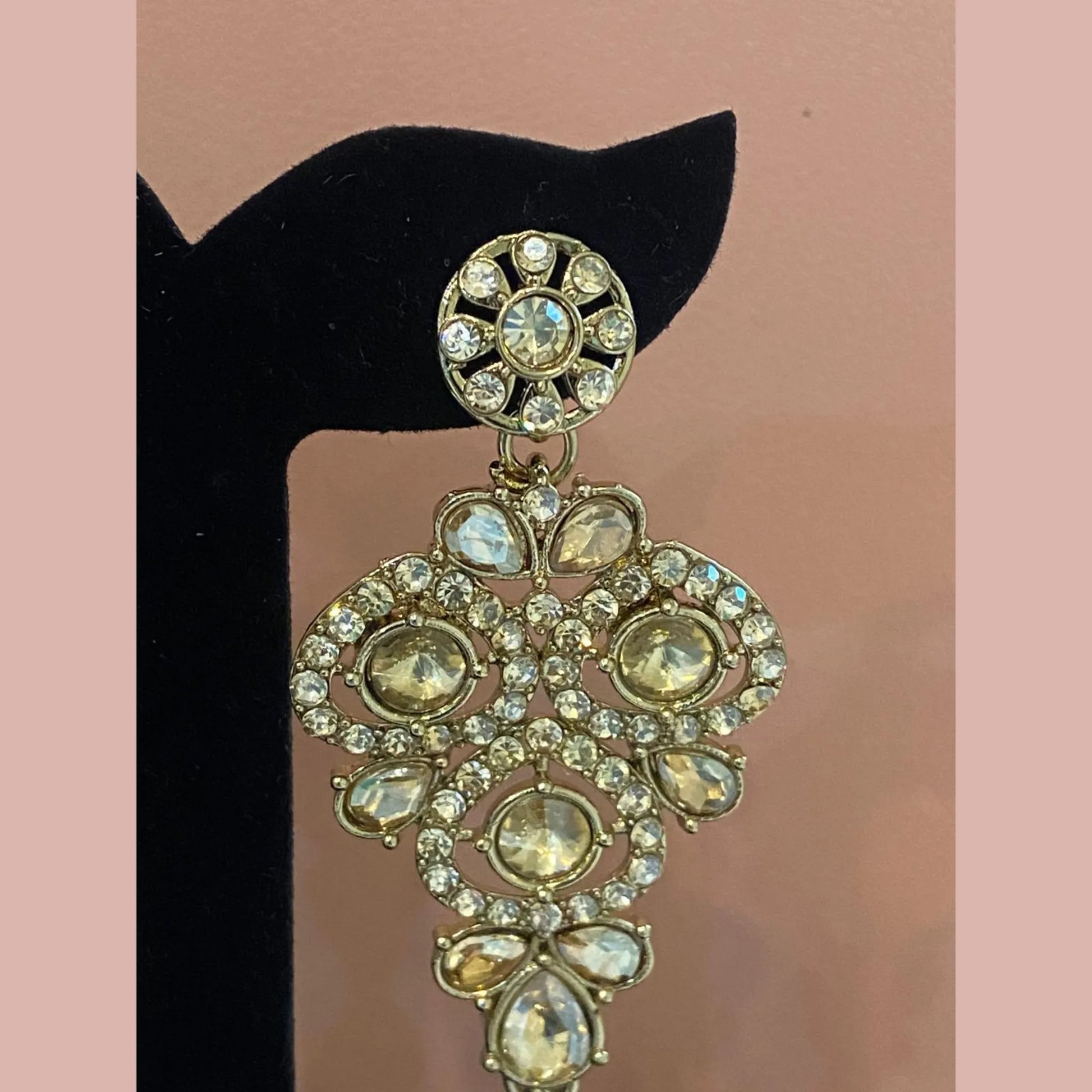 Elevate your bridal look with this stunning golden necklace adorned with warm peach stones, perfectly complemented by a matching passa and maang tikka set. Crafted for the modern bride, this three-piece ensemble combines traditional elegance with contemporary design. The soft peach tones add a romantic touch to your wedding day jewellery, while the quality craftsmanship ensures lasting beauty. Complete your bridal transformation with jewellery that captures both grace and sophistication.